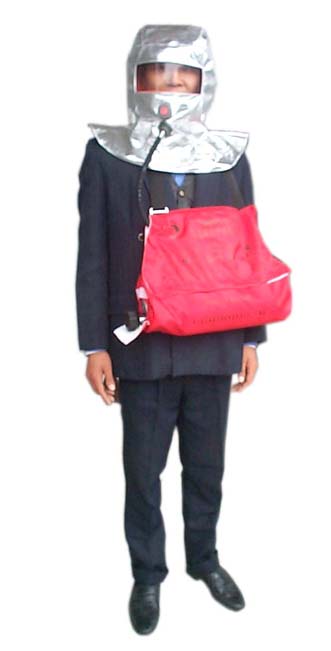 它由压缩空气瓶、减压器、压力表、输气导管、头罩、背包等组成,能提供个人10或15 分钟以上的恒流气体,可供处于有毒、有害、烟雾、缺氧环境中的人员逃生使用。