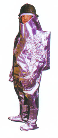 DTXF-93-1型消防隔热服采用纤维织物与铝薄膜的复合材料制作,服装包括上衣、裤子、手套、头罩和盖脚,不含石 棉,具有比重轻、强度高、阻燃、耐高温、抗热辐射、耐磨、耐折以及对人体无毒无害等优点,能有效地保障消防队员 和高温作业人员不被烈焰、高温灼伤。该产品经国家消防装备质量监督检验中心检测合格,符合GA88《消防隔热服性 能要求及试验方法》的要求。船用防护服经中国船级社型式认可和检验。